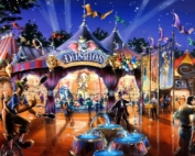Suddenly before me was a scene like a state fair or a huge carnival. Lights were glaring
