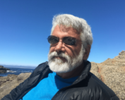 I saw a bright sunlit sky, no clouds. I saw the man that I see often in